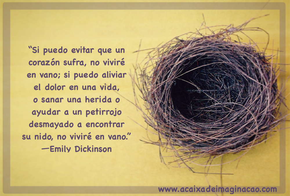 “Si puedo evitar que un corazón sufra, no viviré en vano; si puedo aliviar el dolor en una vida, o sanar una herida o ayudar a un petirrojo desmayado a encontrar su nido, no viviré en vano.”