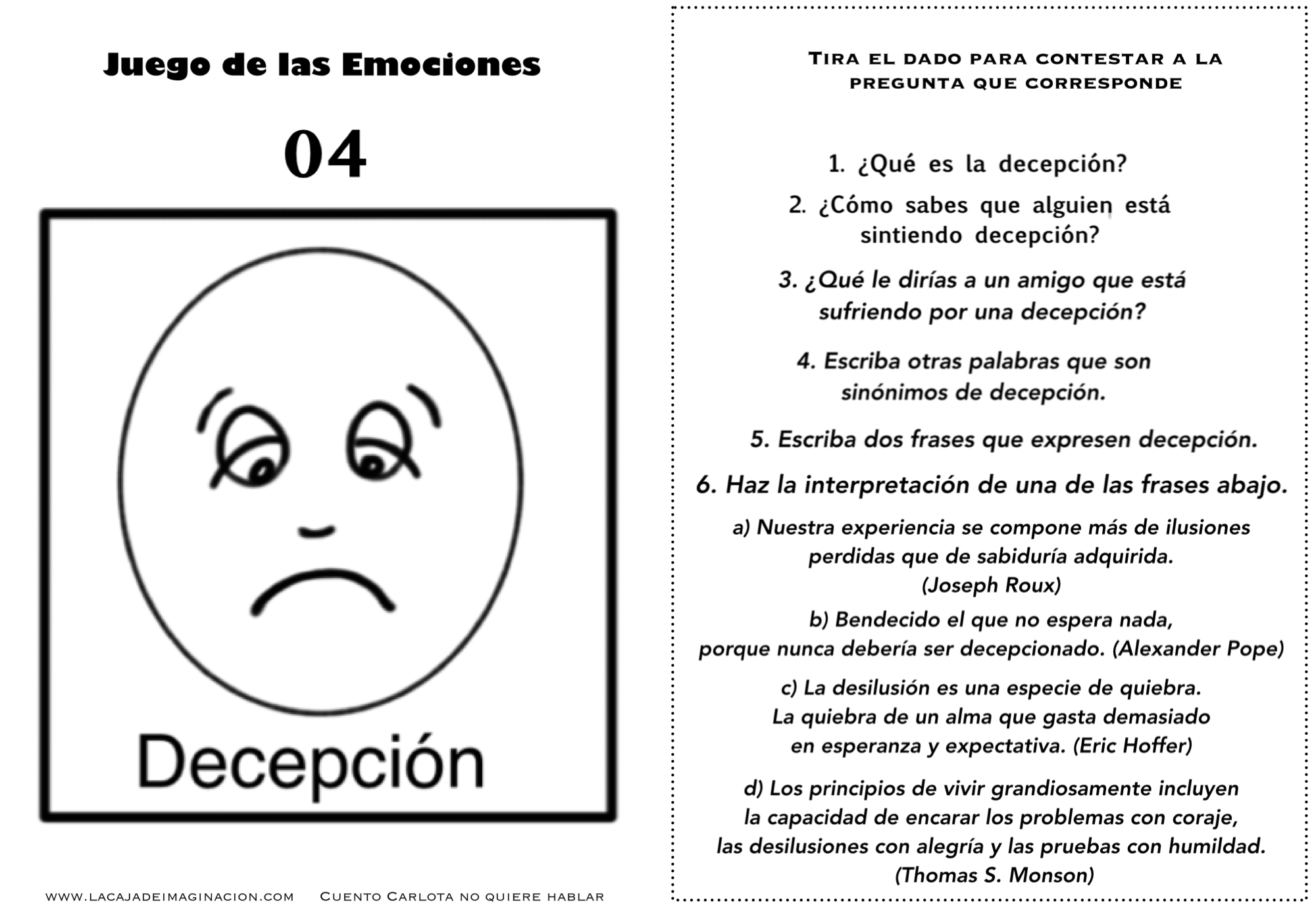 Juego de las emociones 4 frases decepción