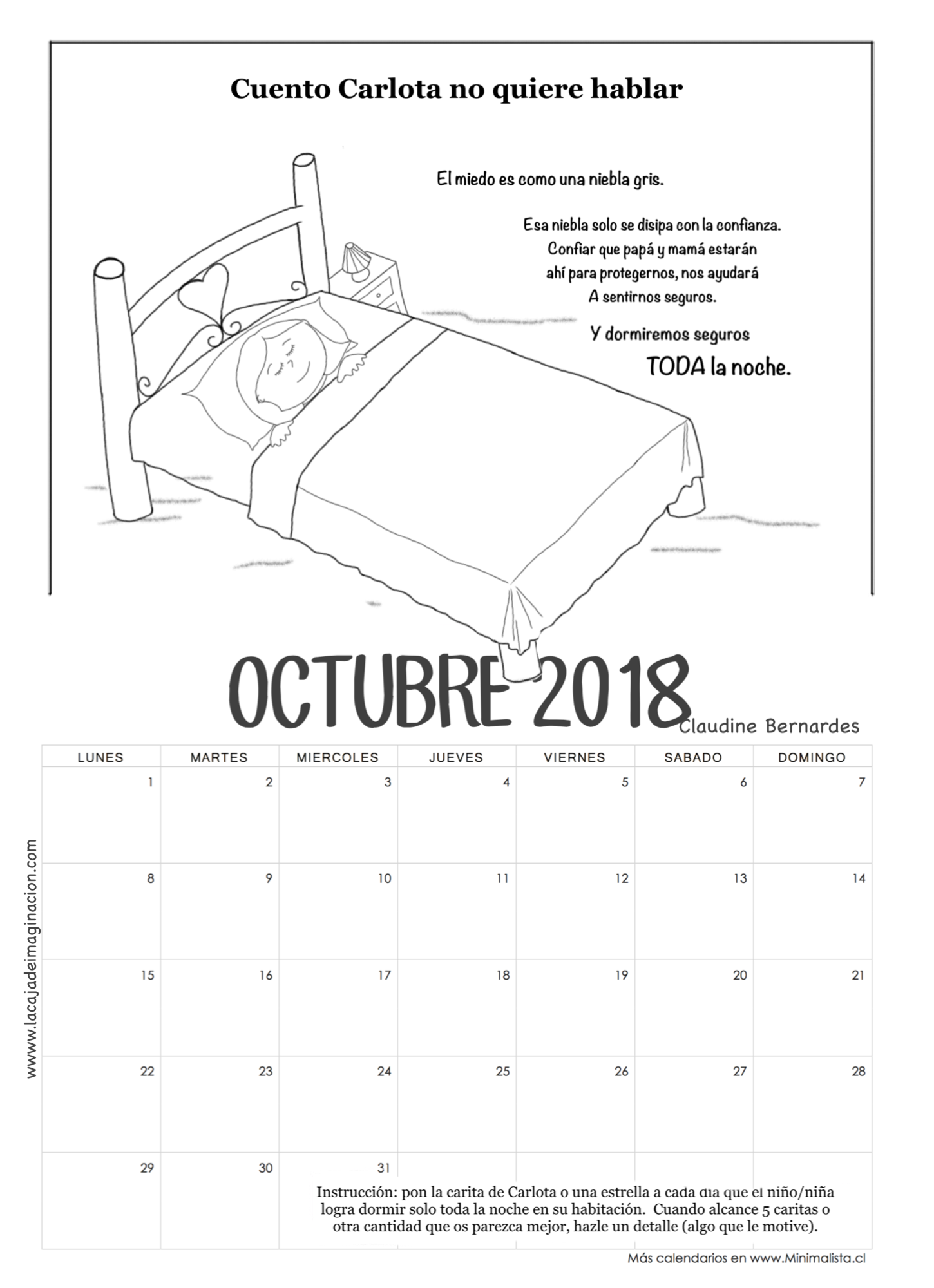 Calendario para dormir solo Carlota 10 2018